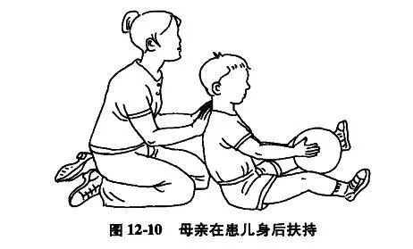 将患儿面对面坐两排,互相将球推向对方,看谁推的又准又快,父亲或母亲可坐在患儿身后扶持患儿。