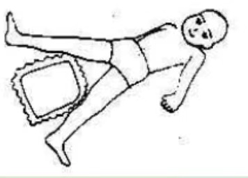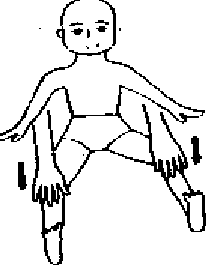 5.患儿休息时双腿间放一枕头或其它柔软的物体,双脚尖尽量朝向外侧,鼓励患儿双腿分开。