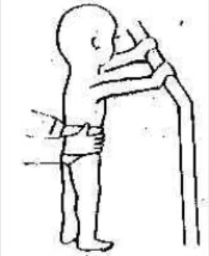4.患儿扶杠侧行,以其主动运动逐渐缓解痉挛,扩大关节活动范围,达到下肢分合动作的熟练和矫正剪刀步态的目的。