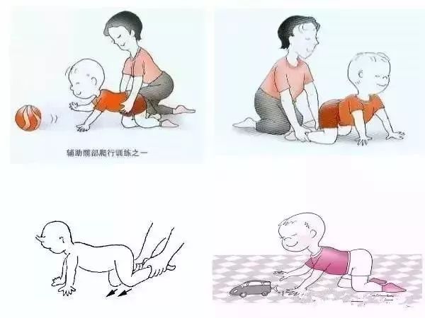(3)立直和平衡反射的进一步完善。迷路立直、视性立直、躯干立直是四爬位的前提,平衡反射是重心移动(前后左右)维持四爬位平衡的前提,如无这两个前提,即使能用手膝位起立,也不能实现爬行运动。