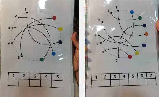 在室内,我们可以走迷宫(在迷宫纸上画),剪纸,和做视觉追踪能力的练习题。练习题的制作也非常简单,如图所示: