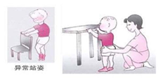 05扶站训练①肌张力低下的孩子:家长用身体支持孩子站立,先固定孩子双足及膝盖,然后双手扶住孩子躯干,若孩子的腰腹肌无力,脊柱不能充分伸展时,则用胸部给予支撑,令其站立。②对于膝关节过伸的孩子,首先对其立位膝关节固定,在其靠墙站立时,家长双手握住双膝,使其前屈,使膝关节得到有效的控制。