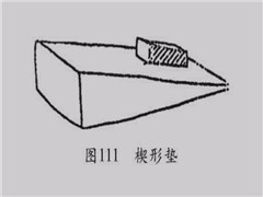 木制楔形框架,铺以海绵或棉花,外层包裹人造革(见图111)。 用途 特别适用于头不能自控、坐不稳、自